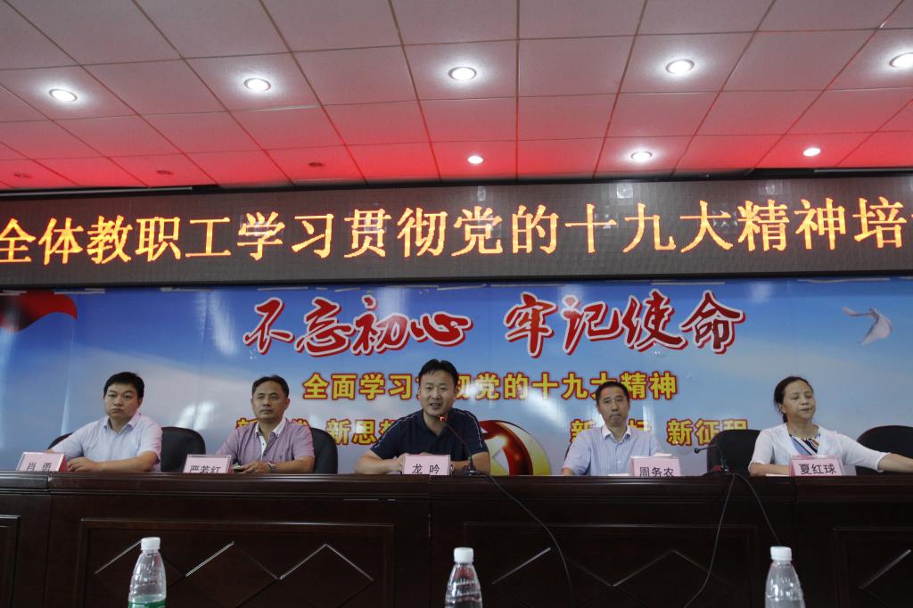 党委书记龙吟同志作总结讲话。龙吟同志对为期2天半的学习培训作出了肯定和高度评价。同时,对全体教职工提出了两个方面的要求。一方面,要系统掌握习近平新时代中国特色社会主义思想对重大理论和实践问题的创造性回答。一是突出政治建设,开拓了管党治党的新境界;二是提出新发展理念,开拓了中国特色社会主义政治经济学的新境界;三是强调坚定文化自信,开拓了中国特色社会主义文化发展的新境界;四是坚持辩证唯物主义和历史唯物主义的基本原理,开拓了马克思主义世界观和方法论的新境界。