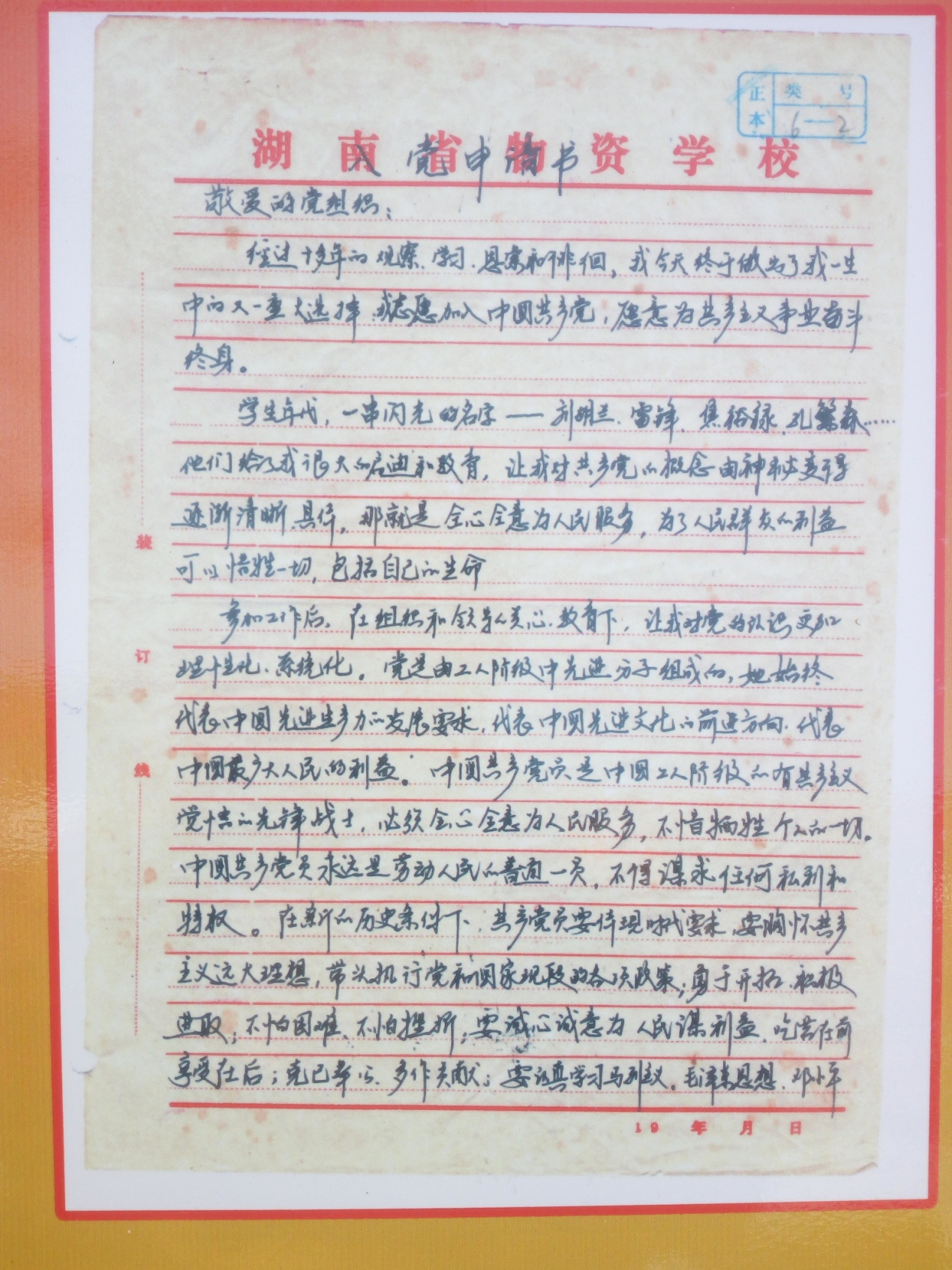 三湘都市报11月5日讯(通讯员 郭瑶 记者 杨斯涵 黄京)当阳光洒向校园,一篇篇带着岁月年轮的入党申请书显得格外耀眼。时不时会有师生从展板前走过,有的被这一篇篇入党申请书的岁月沧桑感所打动,有的被党员干部漂亮的字迹所打动,还有的被这种形式的晒初心活动中所包含的正能量所打动......