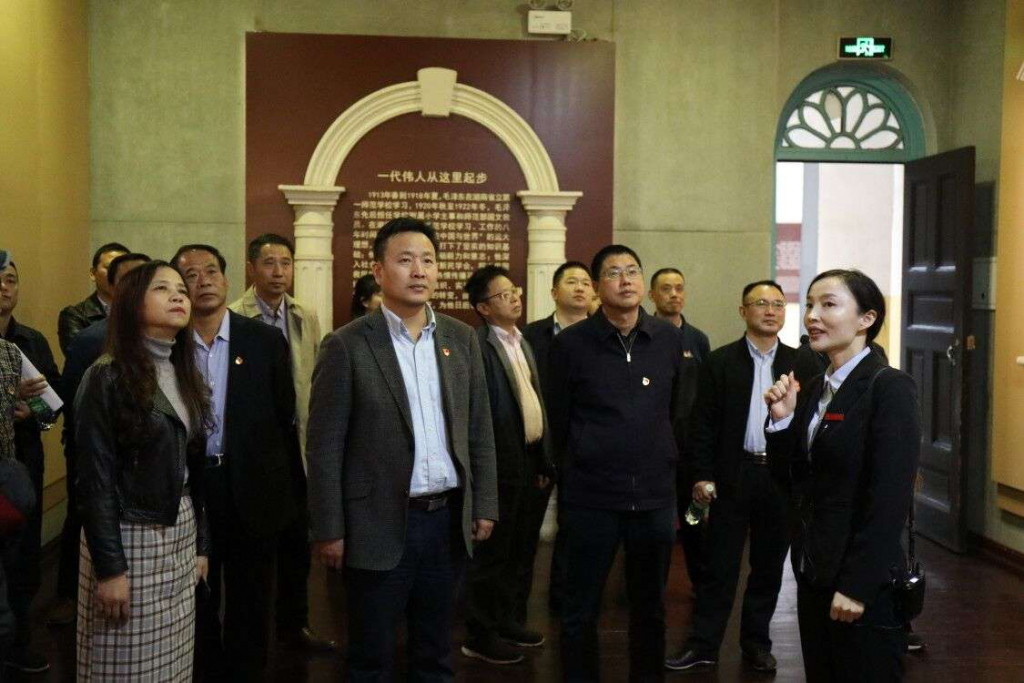 在学校党委书记龙吟的带领下,大家重温了入党誓词,随后参观了按毛泽东同志在湖南第一师范就读时原貌修复的教室、寝室、大礼堂、水井,观看了毛泽东青年时期的笔迹及毛泽东的诗词,了解了毛泽东在第一师范的学习工作经历及他在就读期间提出的 " 文明其精神,野蛮其体魄 "" 闹中求静 "" 积久成学贵有恒 "" 不动笔墨不读书 "" 读无字之书求真知 " 等先进思想观念,也了解了 " 千年学府、百年师范 " 的校史和众多杰出校友。文物展品、历史场景的再现,无一不让大家感受到一代革命先烈的爱国爱民情怀及其创造的光辉伟绩。随后大家前往湖南省军区新中国成立 70 周年文化长廊进行了长达一个小时的自主参观学习。