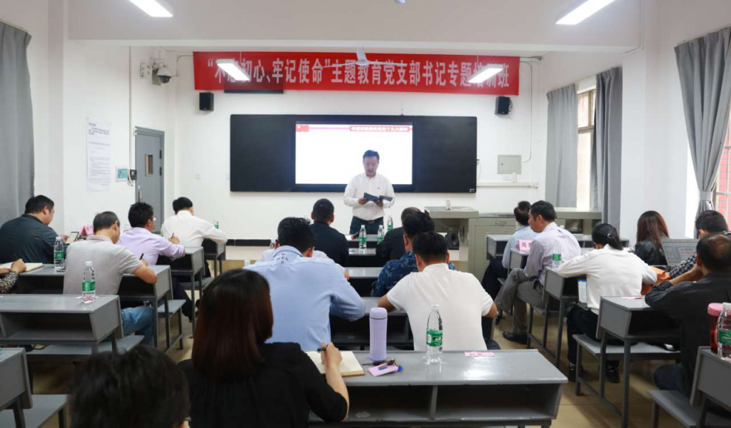 培训班分为党委书记龙吟讲话,听取湖南省委教育工委党校刘国华教授《" 不忘初心、牢记使命 " ——奋力担当有作为》专题报告,理论学习——《习近平新时代中国特色社会主义思想学习纲要》、中央关于开展主题教育的部署要求,围绕 " 五化建设 "、党员发展等党建主题组织支部书记开展交流与研讨四项内容。