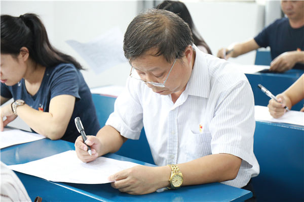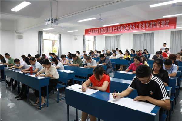 9 月 17 日下午,华亿在线举行基层党务工作者党建知识考试,全体党总支、支部支委(含各总支下设支部支委)共 72 人参加考试,考试形式为闭卷,考试时间为 1 个小时。 按照要求,全体党务工作者必须佩戴党徽参加考试。学校给每一位党务工作者安排了座位号,党务工作者对号入座。
