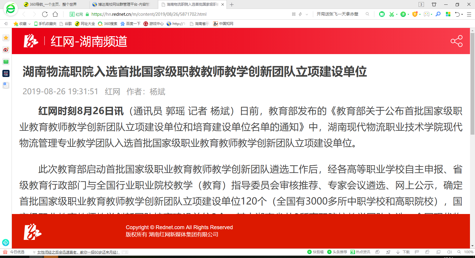 红网:湖南物流职院入选首批国家职教教师教学创新团队立项建设单位