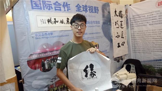 彭六生在展览会现场第一个为马来西亚来华留学生代表现场颁发了预录取通知书,并赠送书法墨宝。他勉励即将赴物流职院学习的留学生们了解中国社会和文化,学习先进知识和技能,成为优秀的国际人才,并为推动中马两国人民友好交往、推动马来西亚国家建设和经济发展服务。