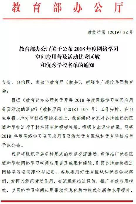 近日,华亿在线被教育部评为2018年度网络学习空间应用普及活动优秀学校。