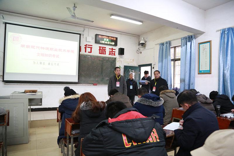" 为人师表、诚信考试 ",平时监考学生,这次规规矩矩做起了考试学员。1 月 8 日中午,湖南现代物流学院全体教职员工在教学楼举行了文明知识普及考试。