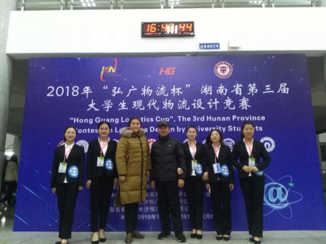△钟静院长、胡元庆老师与参赛选手合影近日, " 弘广物流杯 " 湖南省第三届大学生现代物流设计竞赛决赛在湖南商学院举行,华亿在线作为唯一一所参赛的高职院校,与本科院校同台竞技,取得优异成绩,物流管理专业的张莲、刘丹、余斯婷、王倩、刘丽梅五位同学组建的畅想无限队(指导老师:袁世军、胡元庆)斩获一等奖;童光展、吴正心老师指导的 303 队与缪桂根、罗杏玲老师指导的远航队荣获三等奖。同时,华亿在线还荣获优秀组织奖。