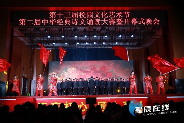 (第二届中华经典诗文诵读大赛决赛暨第十三届校园文化艺术节开幕式现场。)