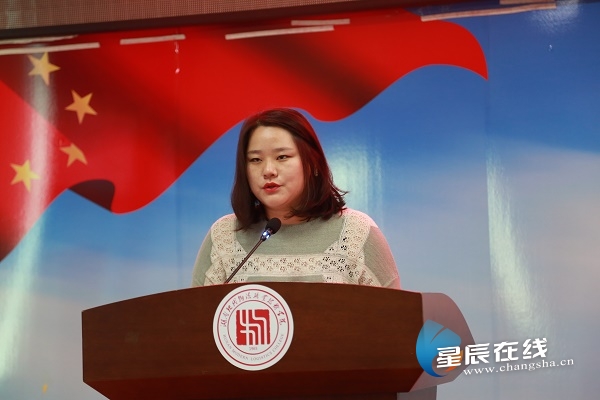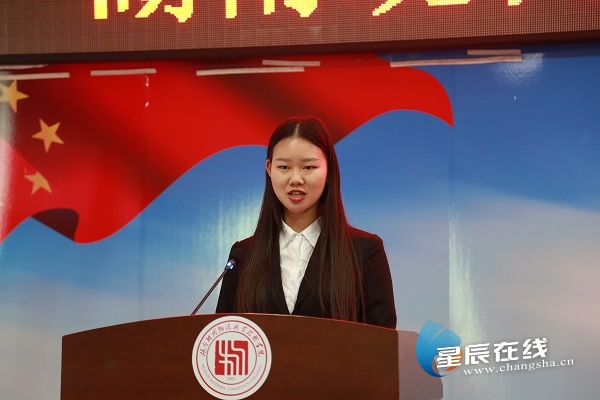 (学生代表黎亚平发言。图片均由通讯员提供。)