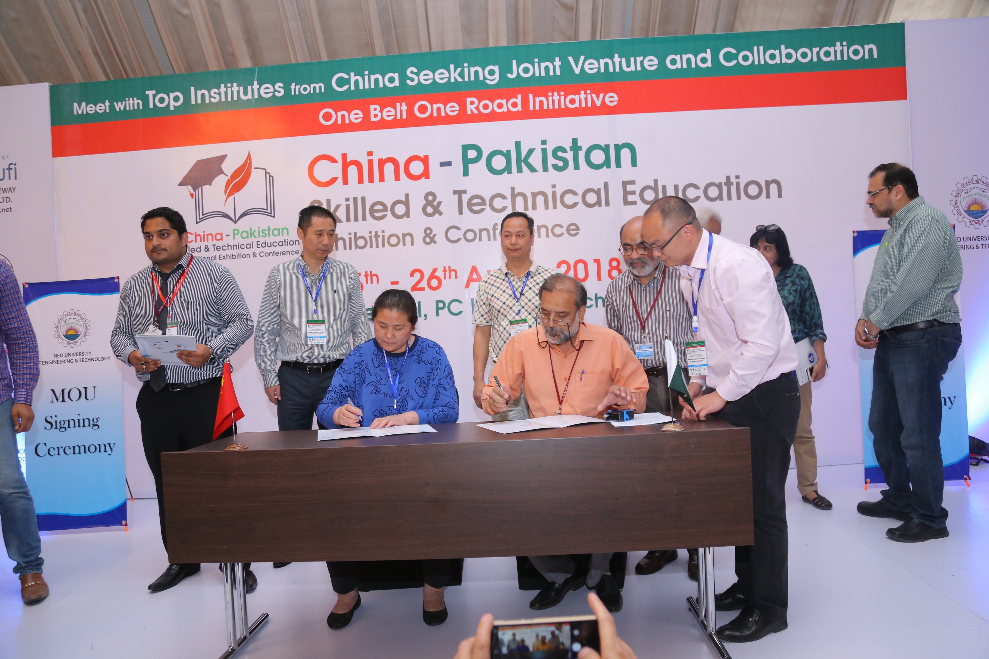 该校党委副书记周务农率领代表团参加了本次国际对接合作交流。交流会上,周务农作了“开放、合作、共赢”的主题演讲。交流期间,该校代表团参观考察了巴基斯坦NED大学、阿曼科技学院及巴基斯坦的职业教育培训和大学教育等方面情况,并与卡拉奇市政府有关部门签订了协助其供应链优化、设立物流职业技术学院分校、互派留学生、企业员工培训、物流师资培训等合作协议、与瓜达尔港签订了物流规划合作协议,与NED大学签订了专业共建、课程共建等11份合作协议。