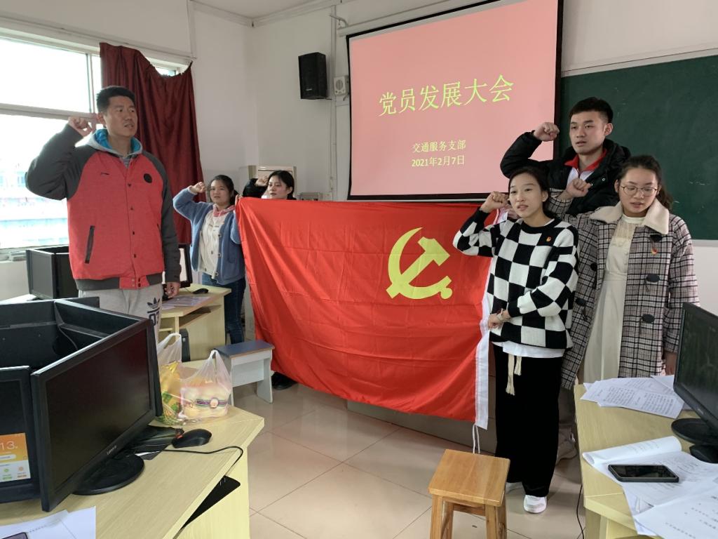 12月7日下午,交通服务党支部在崇技楼四楼会议室召开党员发展大会。会议由支部书记刘威同志主持。