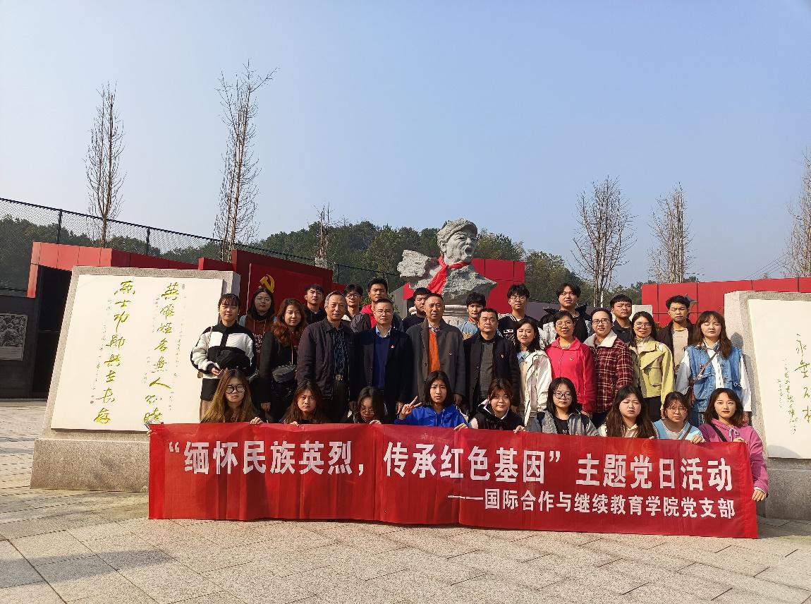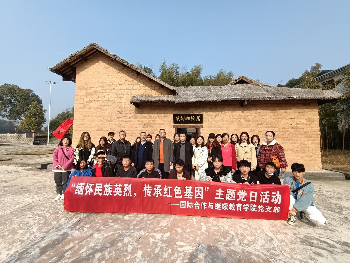 2021年12月10日,国际合作与继续教育学院前往长沙县福临镇陈树湘烈士纪念馆与影珠山抗战遗址公园开展“缅怀民族英烈,传承红色基因”主题党日活动。学校党委副书记周务农,党委委员、纪委书记胡昌建、国继院全体教职工、学生预备党员、入党积极分子和部分思团学干部参加了本次活动。