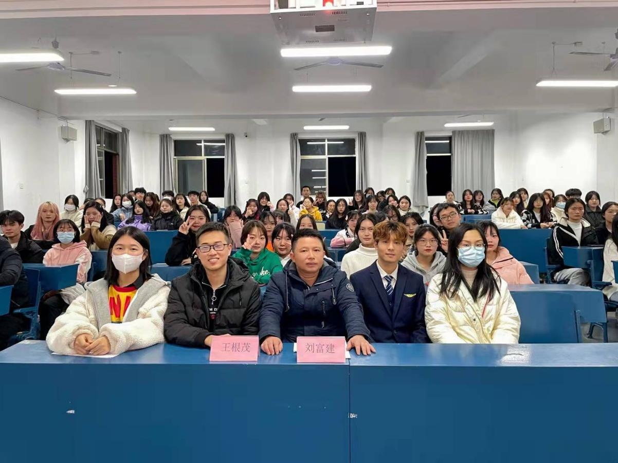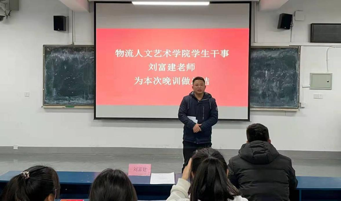 12月23日晚上7点,物流人文艺术学院在教学楼300教室举行第五届思团学学生干部培训成果分享会,出席本次会议的有学生干事刘富建、团总支书记王根茂及思团学全体成员。