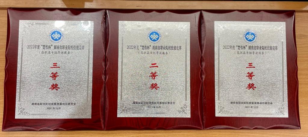 12月24日上午,由湖南省教育厅、湖南省人力资源和社会保障厅与湖南省商务厅联合主办的2022年度“楚怡杯”湖南省职业院校技能竞赛“导游服务”赛项在湖南外贸职业学院举行,共有来自全省30所高职院校的87名选手参赛。经过激烈角逐,最终,杨琼、陶珂、王根茂老师指导的庞典、刘江林、黄雨欣同学分别荣获二等奖、三等奖、三等奖。