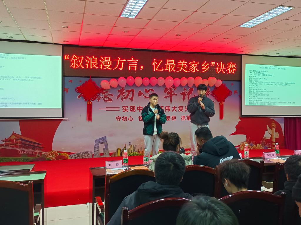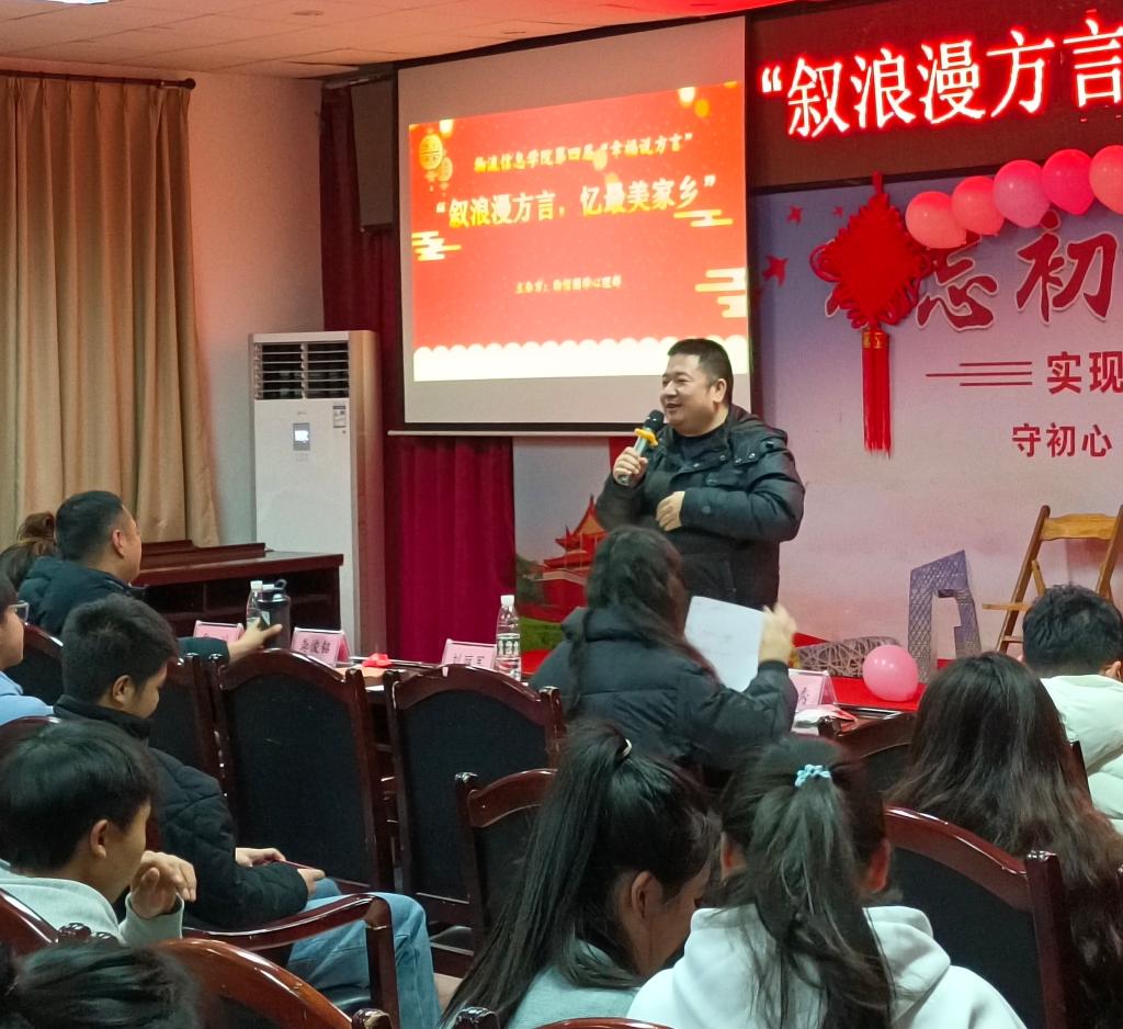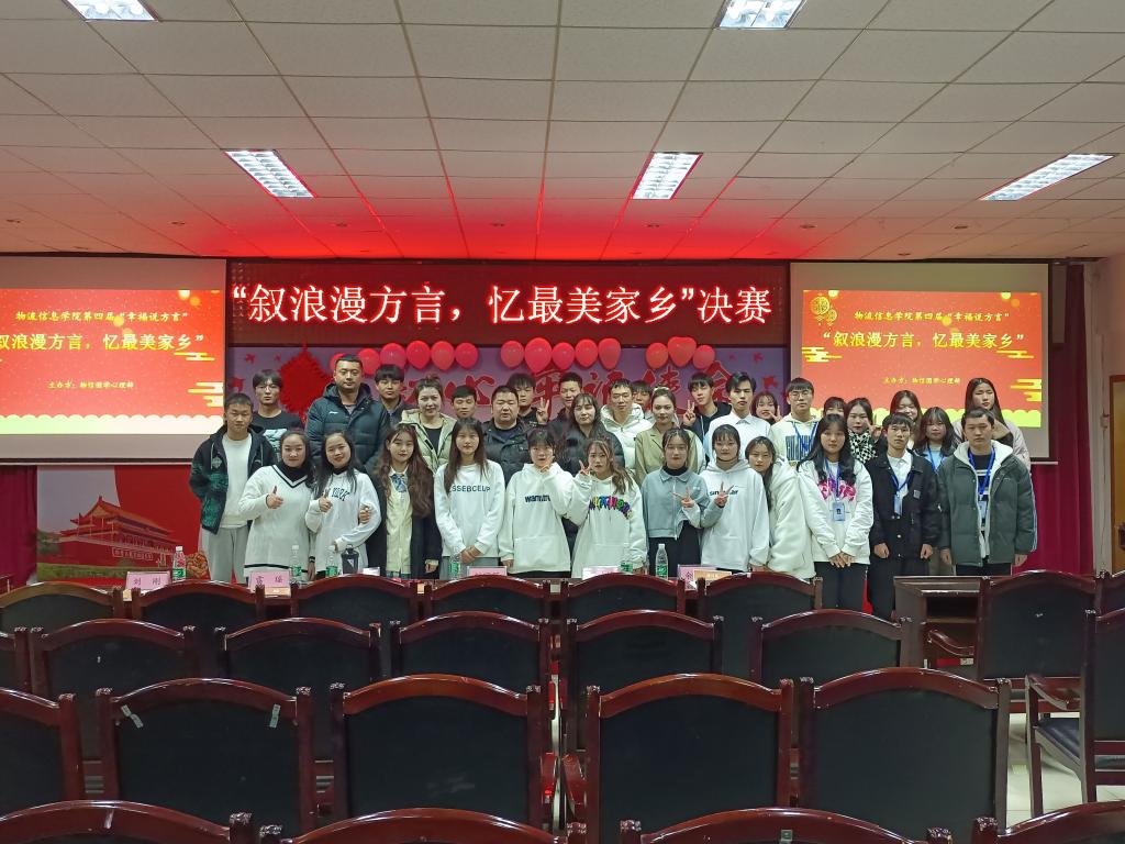 12月28日,物流信息学院第四届“幸福说方言”决赛在明德楼四楼会议室成功举行。物流信息学院党总支书记刘丽军、学生干事龚俊铭、团总支书记雷瑶、专职辅导员邓达城、心理专干余锦秀作为评委和颁奖嘉宾出席了本次活动。