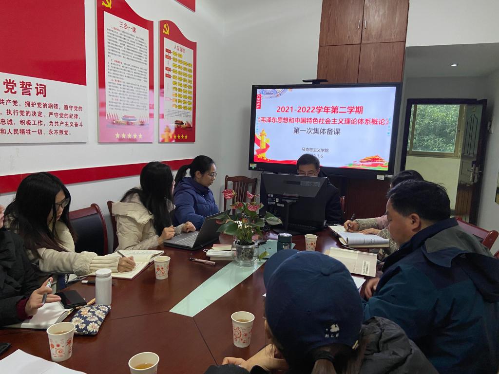 2022年1月6日上午,华亿在线马克思主义学院在物流培训大楼201集体备课室召开了2022年第一次《毛泽东思想和中国特色社会主义理论体系概论》课集体备课会,集体备课由马院院长赵翾主持,马克思主义学院全体教师参加了此次集体备课。