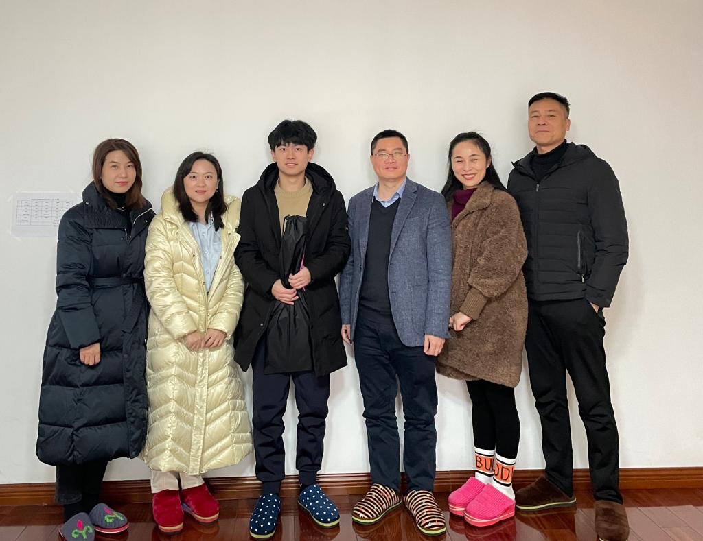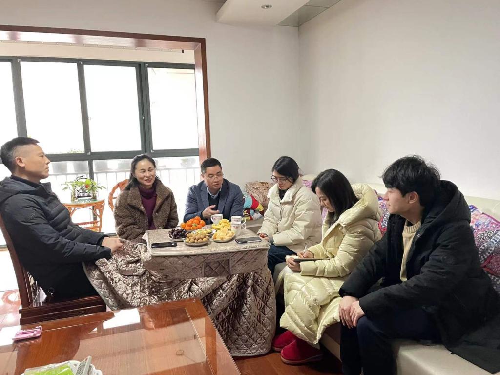 2022年2月13日下午,国际合作与继续教育学院举行“守初心担使命,送温暖播希望”线下家访活动,院长蒋兴君、党支部书记马娜、党员专任教师潘宇星、2021级辅导员尹媛一行来到中德2101班学生李新琦家,受到李新琦同学和父母的热情接待。