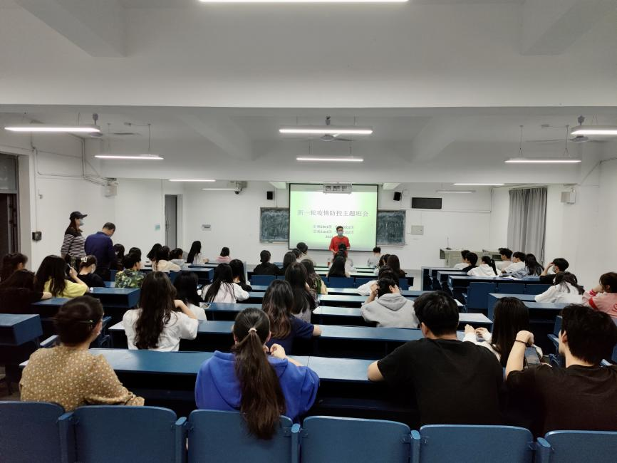 巡查结束,龙雯、李烁一行深入班级,参与学院各个班级召开的疫情防控主题班会。疫情防控主题班会明确了我院防控办近期信息简报要求、疫苗接种统计、个人防护等工作情况,强调我院下阶段如何加强寝室及个人卫生的管理、请假审批的流程等。