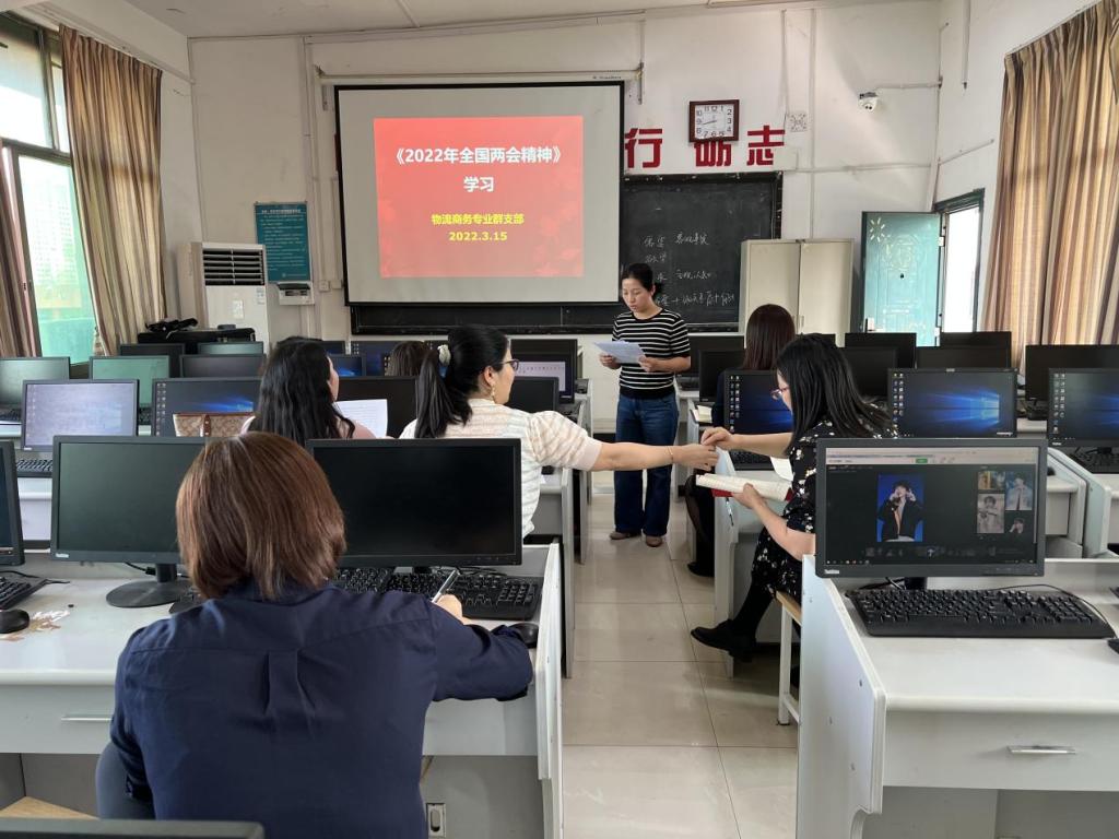 2022年3月15日,物流商务专业群党支部在崇技楼503举行全国两会精神学习会议,党支部书记袁方主持会议。