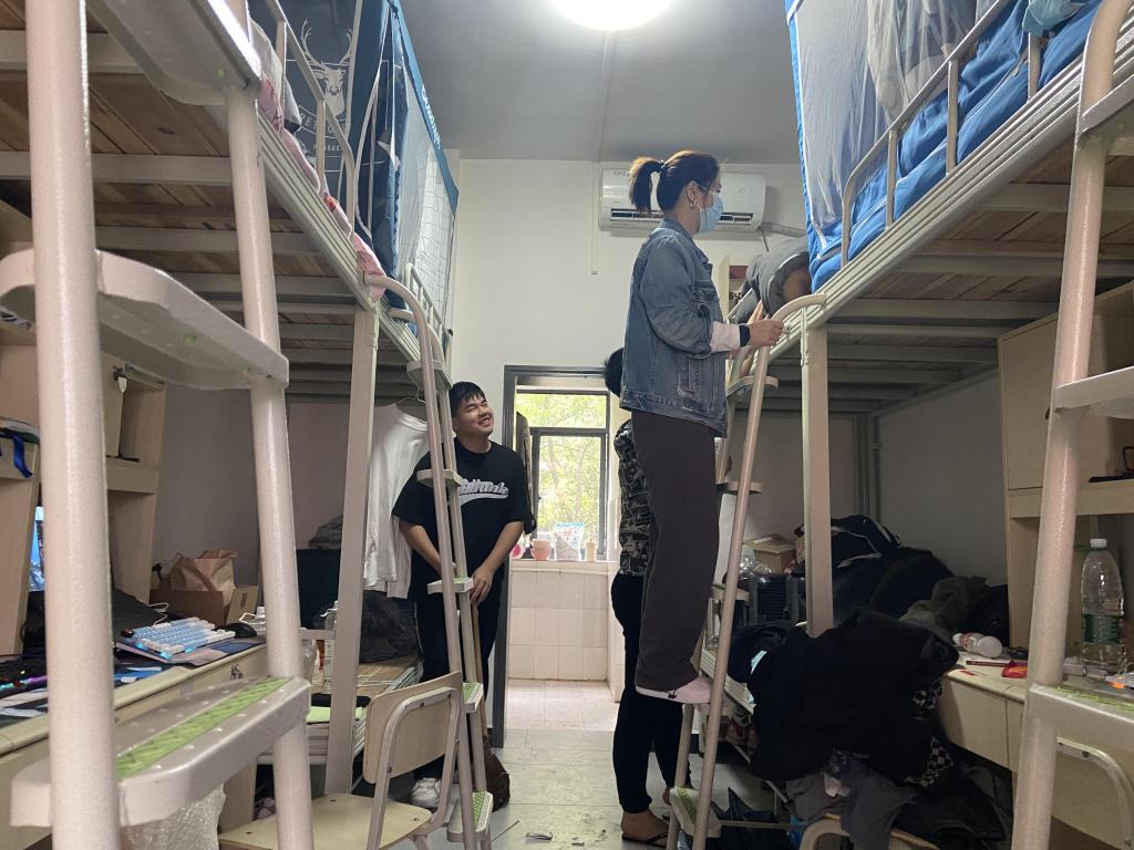 辅导员尹媛督促国继院学生打扫寝室卫生