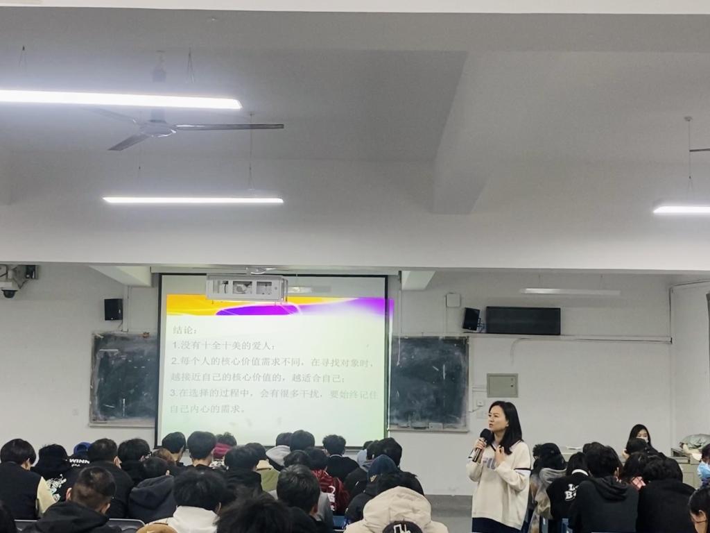 马娜针对近期学生较多出现的因失恋而产生心理问题的现象,着重讲解了恋爱心理发展规律及如何调适失恋心理,通过心理小游戏、全员大讨论、观看视频、情景对话表演等方式,使同学们在欢声笑语中收获感悟。