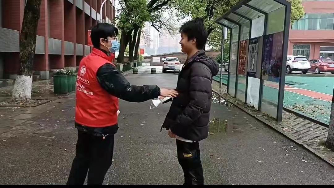 爱心口罩,共同防疫。校园内随处可见穿着红马甲的自考协会的同学,他们在校园内巡逻,给没有佩戴口罩的同学宣传普及防疫知识,派送爱心口罩...面对疫情,自考协会的同学们用实际行动诠释了“奉献、友爱、互助、进步”的志愿服务精神,共同筑起抗疫的铜墙铁壁。