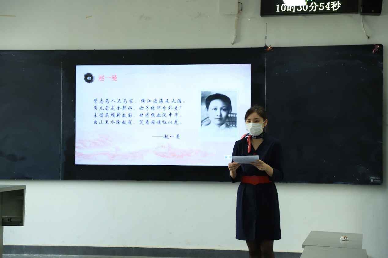 缅怀,为铭记,更为传承。学生代表分享了刘伯坚、赵一曼、蓝蒂裕、江姐等革命先辈们的感人故事,带领同学们回望那段血与火的历史,感悟革命先辈们留给我们宝贵的精神财富,传承红色基因,赓续共产党人精神血脉。
