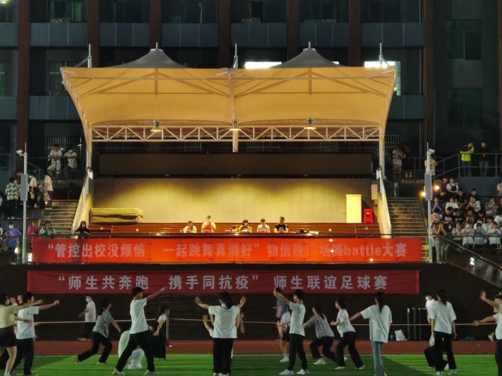 为丰富我院校园疫情防控期间同学们的业余文化生活,缓解同学们封校状态下的压力,进一步营造轻松愉悦、文明高雅、健康向上的校园文化氛围,鼓励师生走出办公室、走出宿舍、走下网络,走向操场,锻炼身心,增强体魄。4月11日,在保障疫情防控的前提下,物流信息学院团总支在学校新田径场开展了一场主题为“管控出校不烦恼,一起跳舞真滴好”的广场舞battle大赛决赛。物流信息学院院长翦象慧担任本次比赛的评委。