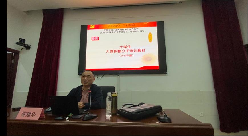 5月10日,物流管理学院2201期入党积极分子培训班第一课在图书馆学术报告厅举行,学校党委委员、副校长陈建华老师主讲。