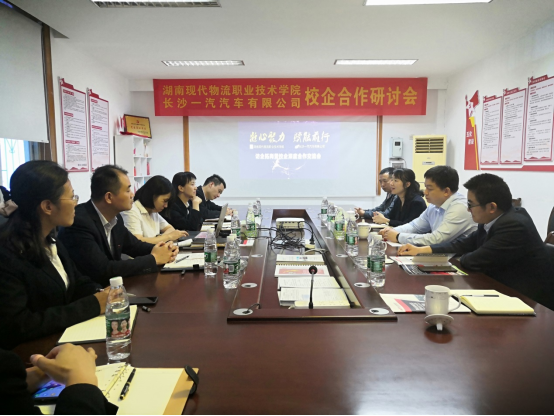 长沙一汽汽车有限公司是我校汽车检测与维修技术专业商用车技术方向的校企合作单位、学生顶岗实习挂牌单位、教师企业实践挂牌单位。首先副总经理曹昕向各位领导介绍了长沙一汽汽车有限公司的发展历史,并引导大家参观了长沙一汽汽车有限公司。人力资源部经理孙婷向各位领导详细介绍了校企合作人才培养的实施情况和取得的成果。
