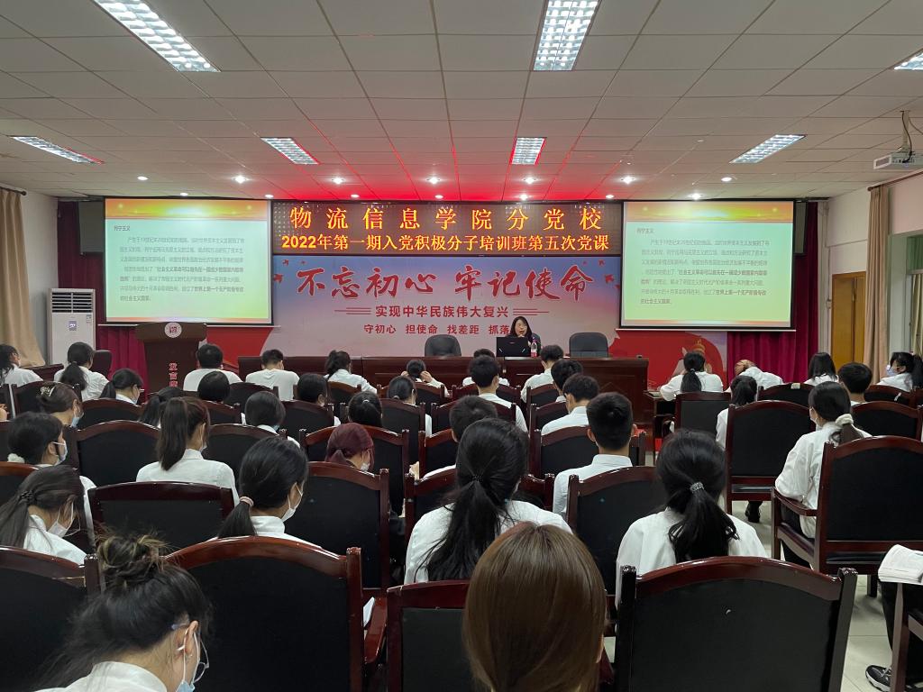 2022年5月26日晚7:00,物信学院分党校2022年第一期入党积极分子培训班第五堂党课于明德楼四楼会议室成功开讲。物信学院院长翦象慧以《中国共产党的指导思想》为题为入党积极分子进行授课,培训班全体学员参加学习。