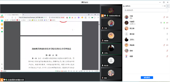 4、黄志超老师带领大家学习了《华亿在线实训室安全教育与准入管理办法(试行)》,通过对该办法的学习,有利于不断提高广大师生的安全意识,熟悉相关安全知识,防止和减少实训室安全事故发生,确保实训室正常有序运行。
