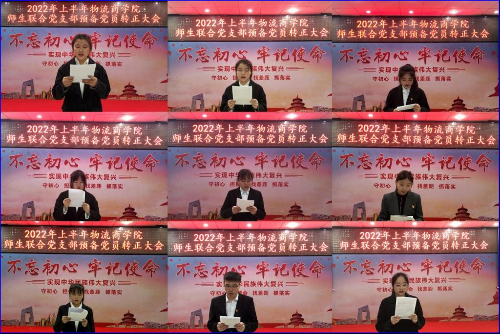 6月16日上午9:30,物流商学院师生联合党支部在明德楼四楼会议室召开预备党员转正大会,讨论关于单艳等9位同志申请转为正式党员的问题。出席本次会议的人员有党总支书记储昱同志、党支部全体师生党员、预备党员、转正同志及转正同志入党介绍人、2022年第一期发展对象以及部分思政干部。