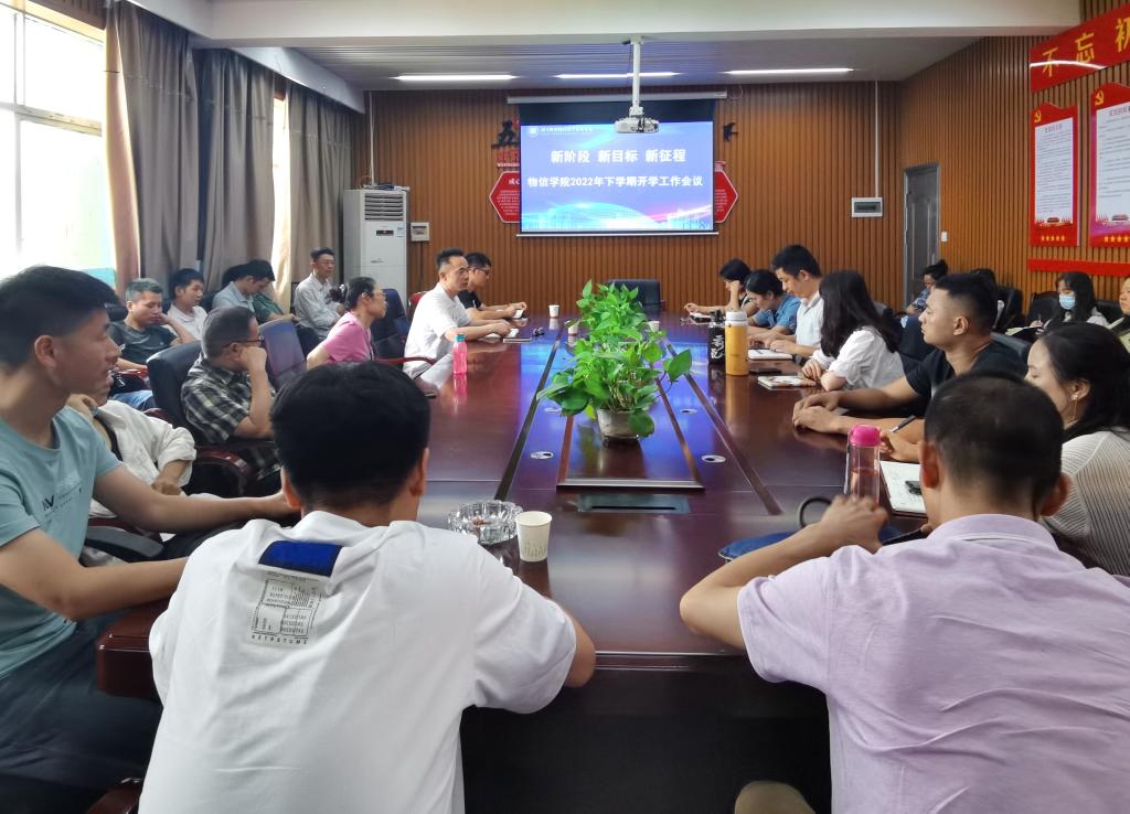 廖向阳通报了我院今年招生情况及2022届各专业、班级就业落实情况,他对新学期工作提出15字要求与全体教职工共勉:多学习、多思考、多分析、多作为、多协作,相信大家齐心协力,在新的学期,学校发展进入新的阶段,锚定新的目标,开启新的征程,为学校“双高校”的建设做出物信院应有的贡献。