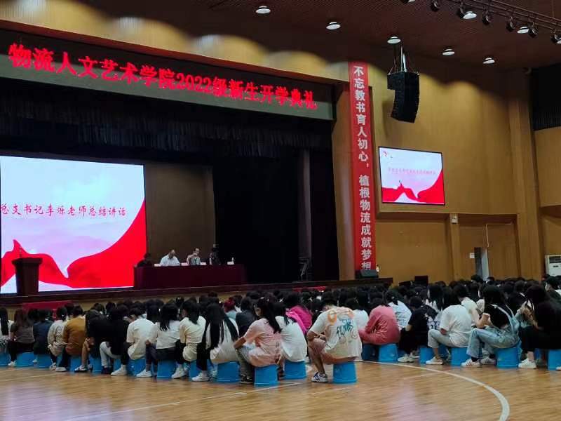 9月13日20点,物流人文艺术学院在体艺馆召开2022级新生开学典礼。物流人文艺术学院党总支书记李烁、副院长姚济国、办公室主任汤愿、学生干事刘富建及22级新生辅导员出席大会,学院全体22级新生参会。会议由李烁主持。