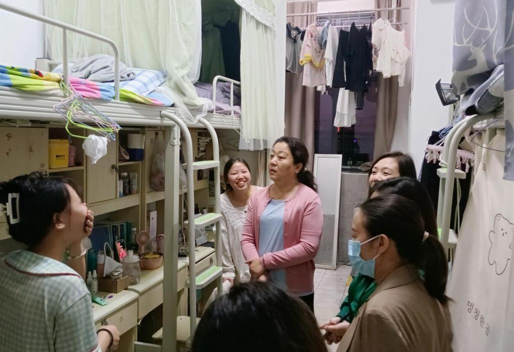 为落实学校党委关于安全稳定工作会议的精神,切实保障学生人身安全,9月22日晚上,物流商学院党总支书记储昱、辅导员李芳、何莉洋、周海容等老师深入学生寝室,了解学生们的寝室生活和学习情况。