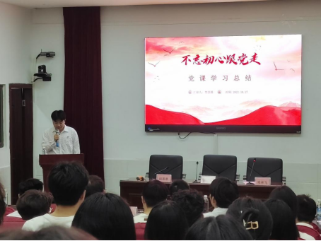 分享结束后,团总支书记赵思惠宣读结业名单以及优秀学员表彰决定。而后,优秀学员代表物工2101班刘应谭进行发言。他就其如何学习党性知识分享了些许感悟和经验。