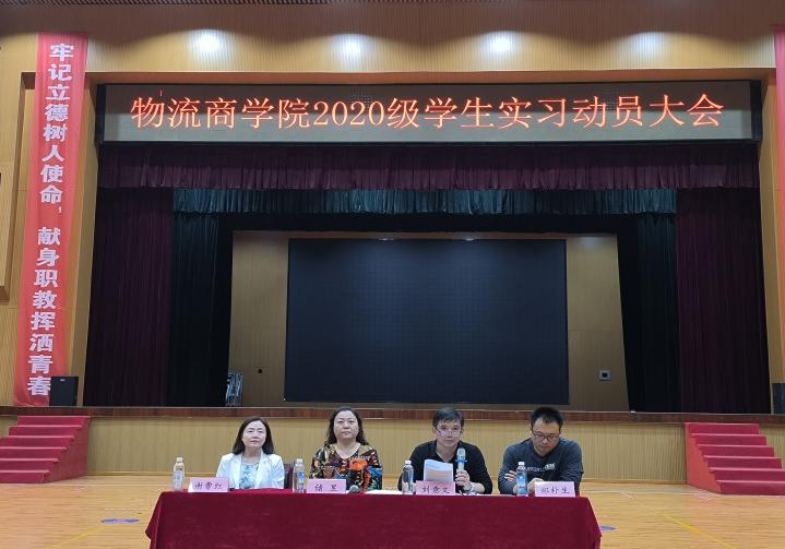 为做好毕业生岗位实习和就业工作,引导学生树立正确的实习观念,进一步提高就业信心,11月9日晚上6点,物流商学院召开2023届毕业生岗位实习动员大会。会议在体育馆进行。商学院党总支书记储昱、院长刘意文、学生干事郑朴生、综合干事谢曹红、2020级全体辅导员及全体学生参加此次会议。