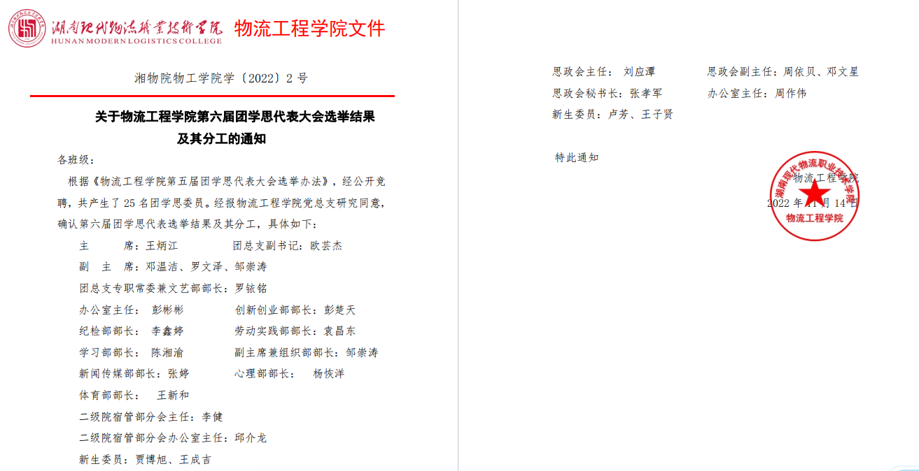 2022年11月12日上午9点,物流工程学院第六届思团学代表大会在办公楼四楼会议室顺利召开。物流工程学院党总支书记刘建辉、物流工程学院院长杜丽茶、师生联合党支部书记梁林飞、团总支书记赵思惠、辅导员马菊和物流工程学院第五届思团学全体委员、第六届思团学候选人、预备党员、入党积极分子以及各班级代表参加了本次大会。