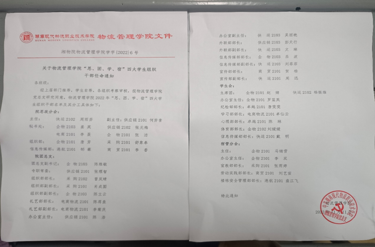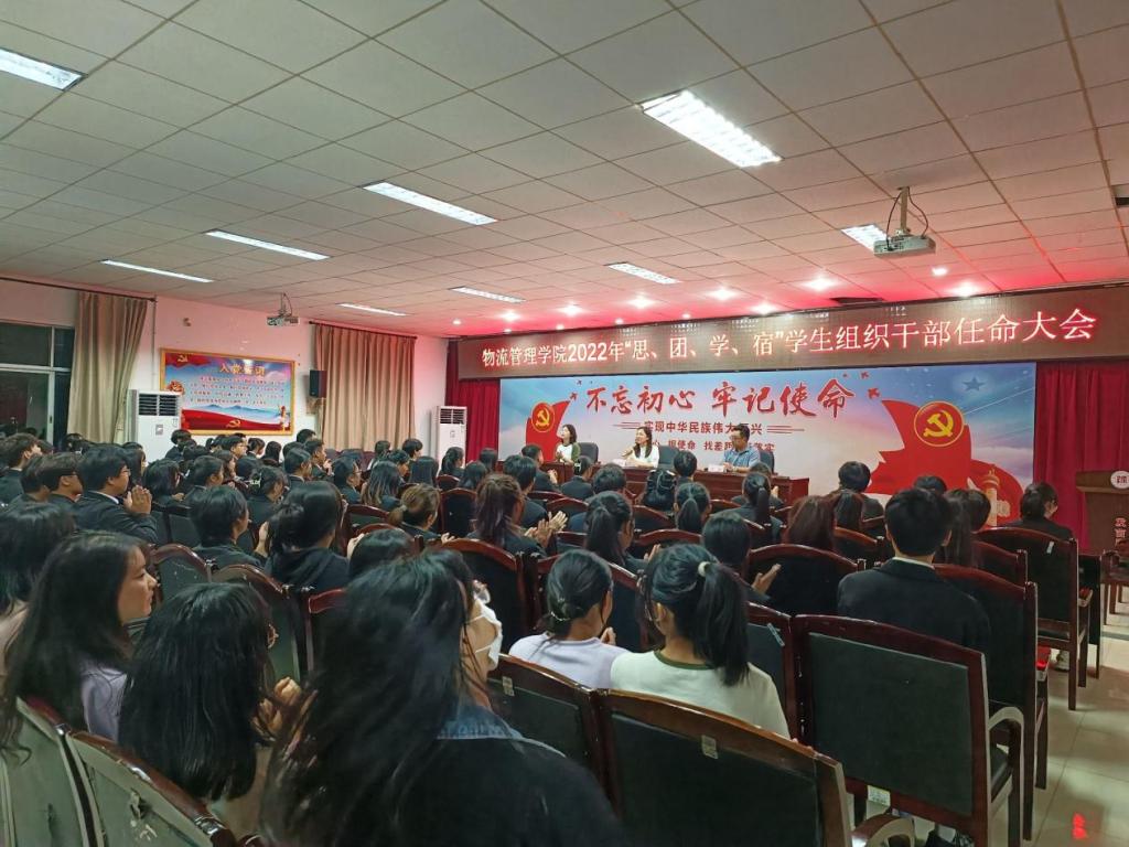 11月11日,物流管理学院在明德楼四楼会议室举行学生干部任职暨表彰大会。物流管理学院党总支书记卜志纯、学生干事何磊、团总支书记刘赛、全体学生干部及各班班长、团支书出席大会。
