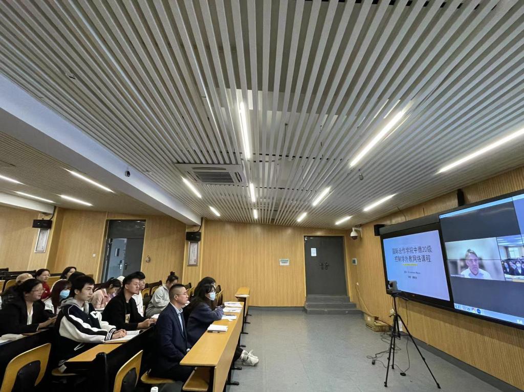 2022年11月21日中午1点,国际合作与继续教育学院现代物流管理(中外合作办学)专业《控制学》外教网络课程在教学楼100教室顺利开课。国际合作与继续教育学院院长蒋兴君、德语教研室主任潘宇星参加听课,谢新泉老师担任翻译助教。