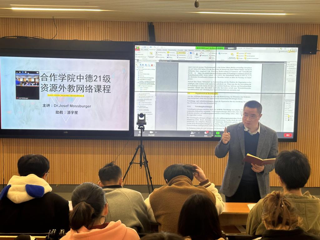 2023年2月20日,我校现代物流管理(中外合作办学)专业中德21级《人力资源管理》外教专业课通过网络在线授课的方式顺利展开,课程由德国北黑森应用技术大学Josef Mossburger教授主讲,我校德语教师潘宇星担任助教,全程参与跟课管理。
