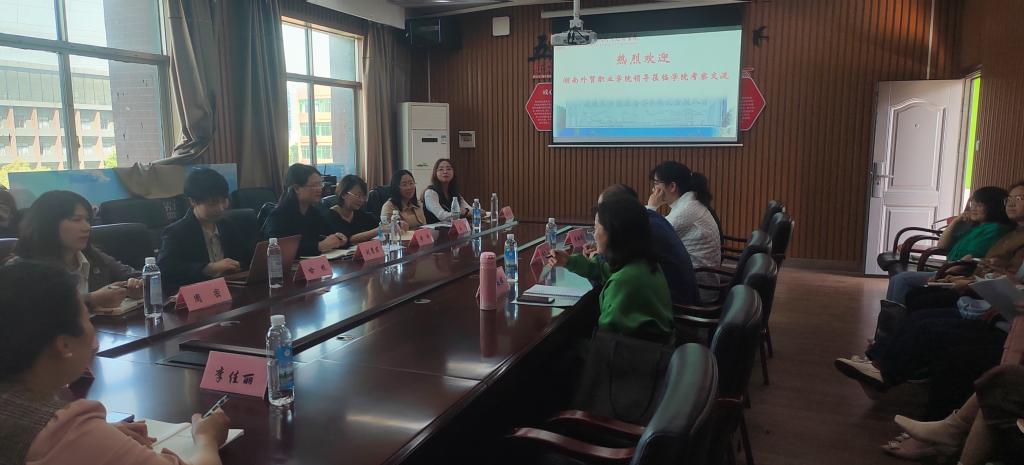 3月14日下午,湖南外贸职业学院商务外语学院院长刘慧君一行九人莅临我校调研交流公共英语教学改革和商务英语人培方案修订工作。物流人文艺术学院姚济国副院长及涉外服务教研室所有教师参加了会议。