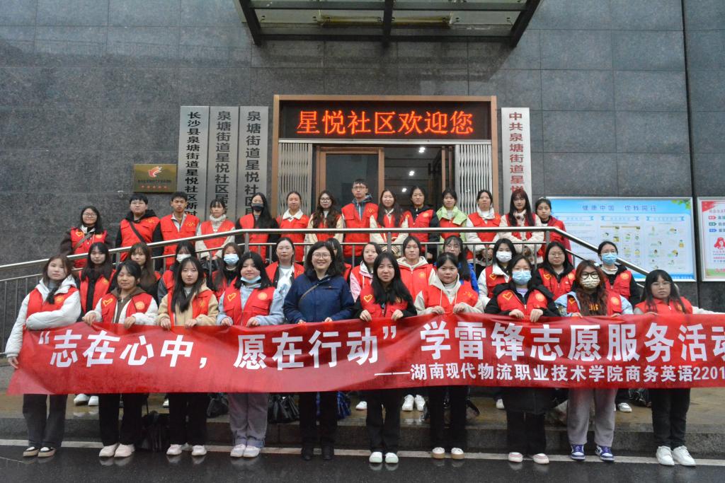 三月春风暖人心,雷锋精神代代传。为更好地传播、弘扬、践行志愿服务精神,积极响应华亿在线团委提出的“人人学雷锋,长沙志愿红”和学院总支提出的“争学雷锋,践行有我”志愿服务活动月号召,3月19日下午物流人文艺术学院2022级商务英语1班团支部全体同学在班级辅导员龚韵洁老师的带领下不畏严寒暴雨奔赴长沙县泉塘街道星悦社区积极参与“敲门行动”,用自己的实际行动践行“雷锋精神”。