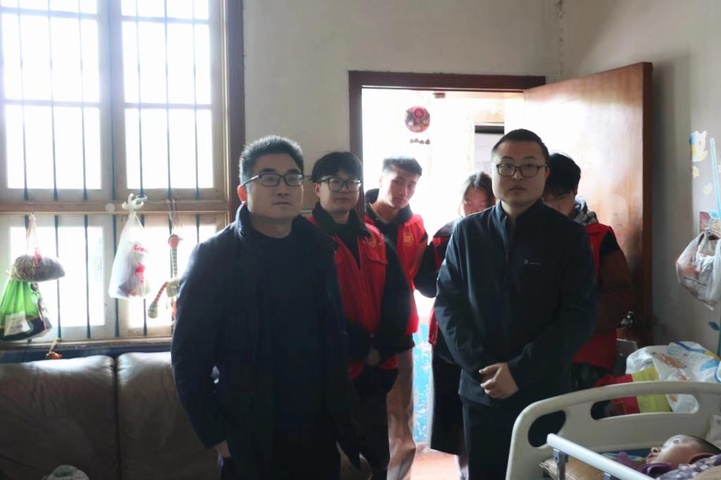 座谈会结束后,一行人来到特殊家庭周正九家中,为他送去了大米、食用油、尿不湿等慰问品。刘建辉书记通过慰问,了解到周正九家庭成员的身体状况,和一家的就业及经济来源情况。该特殊家庭共六口人,其中有四个孩子。两个孩子因疾病原因生活都不能自理,其中一个孩子近期突发意外不幸离世,家庭经济十分困难。刘建辉书记鼓励他们要保持乐观的心态积极面对生活,树立战胜困难的信心。最后,周正九一家与两位书记及志愿者们进行合照,脸上绽放了发自内心的笑容,并对志愿者们在生活与精神双层面的援助表示感激。