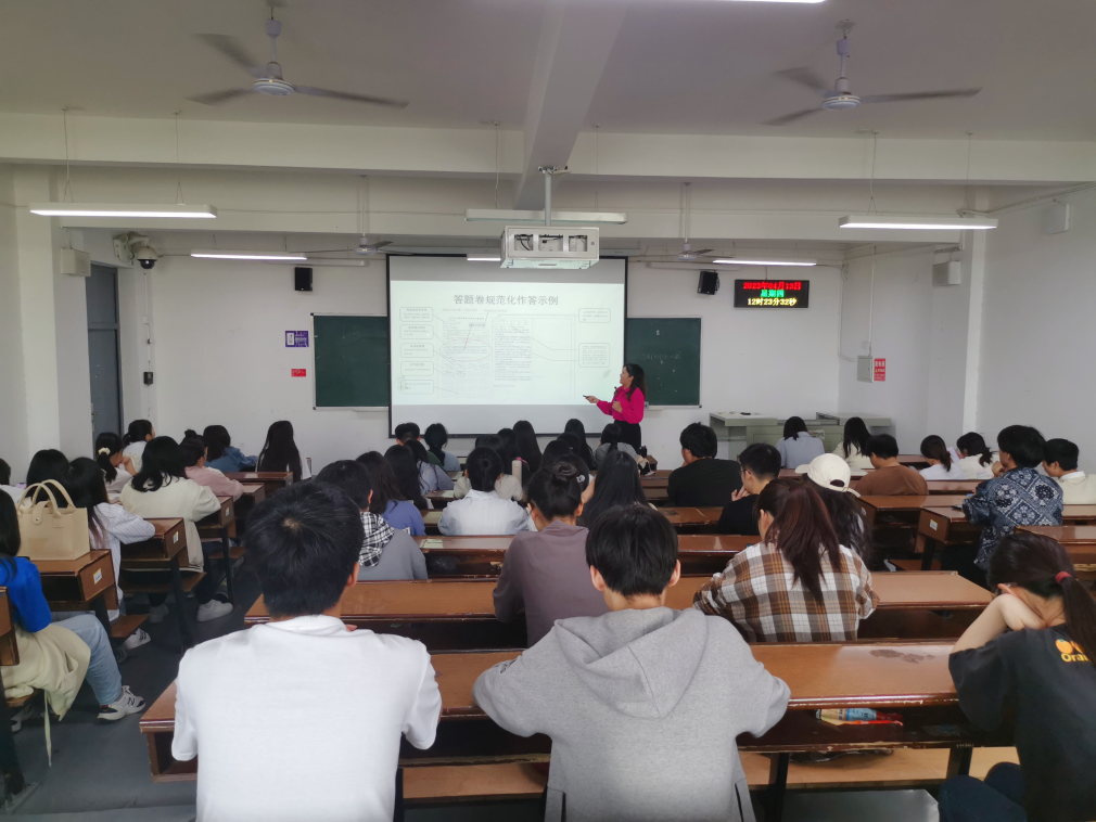 会上,自考办王芳老师对考前准备事项、考试注意事项、考场纪律等内容进行了重点解读。并针对上述重要内容设置了有奖问答环节,通过师生们的互动,让同学们牢记考试注意事项,树立正确的考试观,积极备考、诚信参考。最后,王老师带领同学们为本次考试许下铿锵的誓言:物流学子自考本,学不成功誓不休,四月战鼓吹得响,努力奋战全过关。
