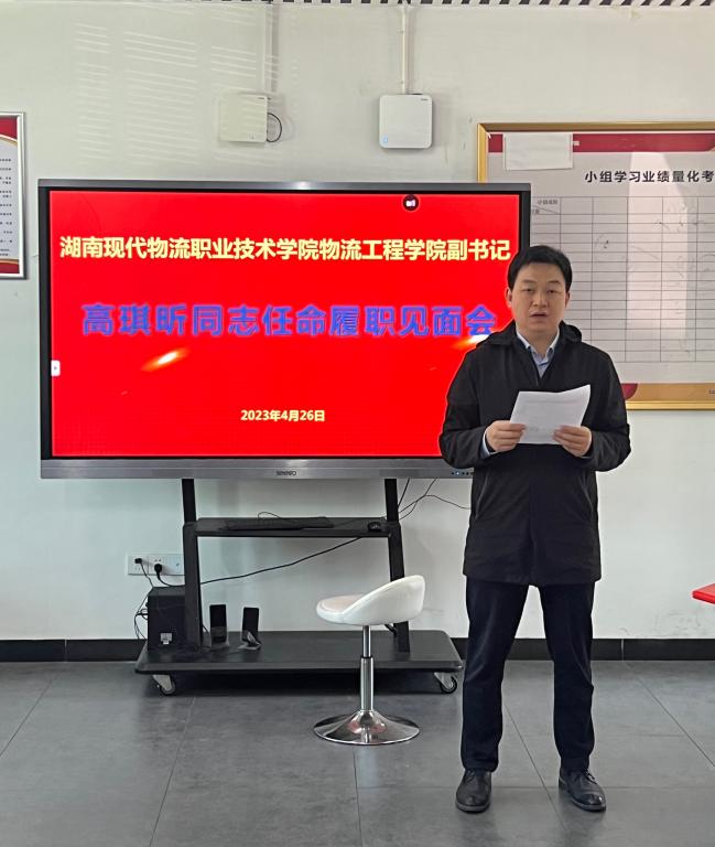 4月26日中午,物流工程学院全体教职工齐聚一堂,为新上任的党总支副书记高琪昕同志举行了简单的履职见面会,校党委委员、组织人事处处长肖勇出席了见面会。见面会由学院党总支书记刘建辉主持。
