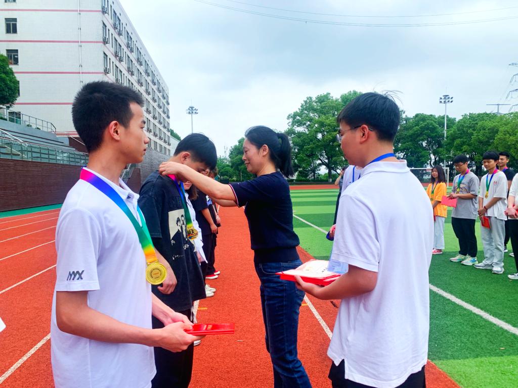 截至活动结束时,共有54名同学完成了100km长跑打卡活动,其中官云笑等6名同学率先完成里程,获得“五四运动之星”奖状及纪念奖牌,赵江等48名同学按期完成里程,获得 “五四运动达人”奖状及纪念奖牌。颁奖典礼于5月5日中午12:30在田径场举行,物流信息学院党总支副书记钟淼、学生干事龚俊铭参加此次颁奖活动并为获奖同学们颁奖。