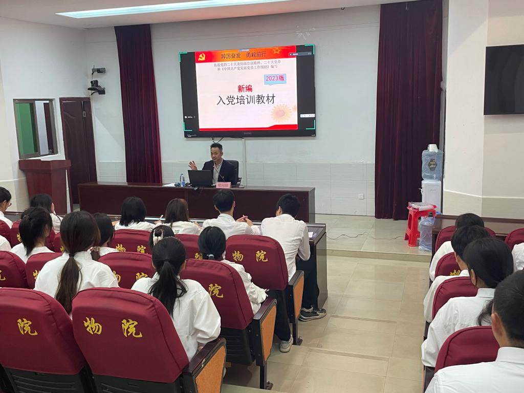 课前,廖向阳以火马村镇大桥村的乡村振兴为例,通过向同学们讲述乡村振兴任务艰巨而乡村年轻党员少之又少的现状,让大家明白“道阻且长,行则将至”的道理,激励他们更应该做有理想、敢担当、能吃苦、肯奋斗的新时代好青年。廖向阳从充分认识入党积极分子专题培训的重要意义,端正入党动机,牢记党的宗旨,坚定共产主义理想信念等方面作了详细阐述。要求大家要以此次党课培训为学习契机,筑牢信仰之基,补足精神之钙,积极向党组织靠拢,牢记中国共产党人的初心和使命,在成为党员的道路上要通过重重考验,力争早日加入光荣的中国共产党。在课程结束前,廖向阳寄语同学们“希望同学们努力成为爱国、立志、求真、力行的新时代大学生,勇敢肩负起时代赋予我们的重任”。