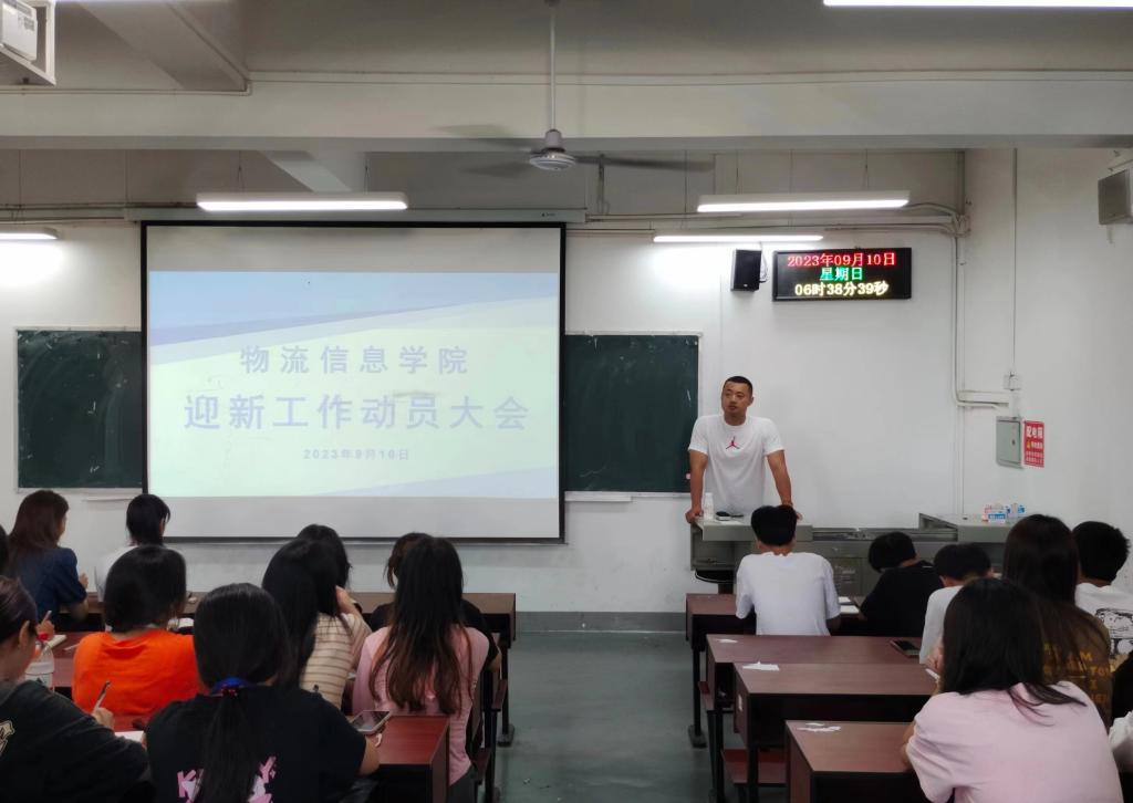 为了确保迎新工作有序、稳步推进,2023年9月10日上午9点,物流信息学院于教学楼113召开迎新工作动员大会,物流信息学院党总支副书记钟淼、团总支书记雷瑶、新生助理辅导员、学生干部及入党积极分子参加了本次会议。会议由学生干事龚俊铭主持。