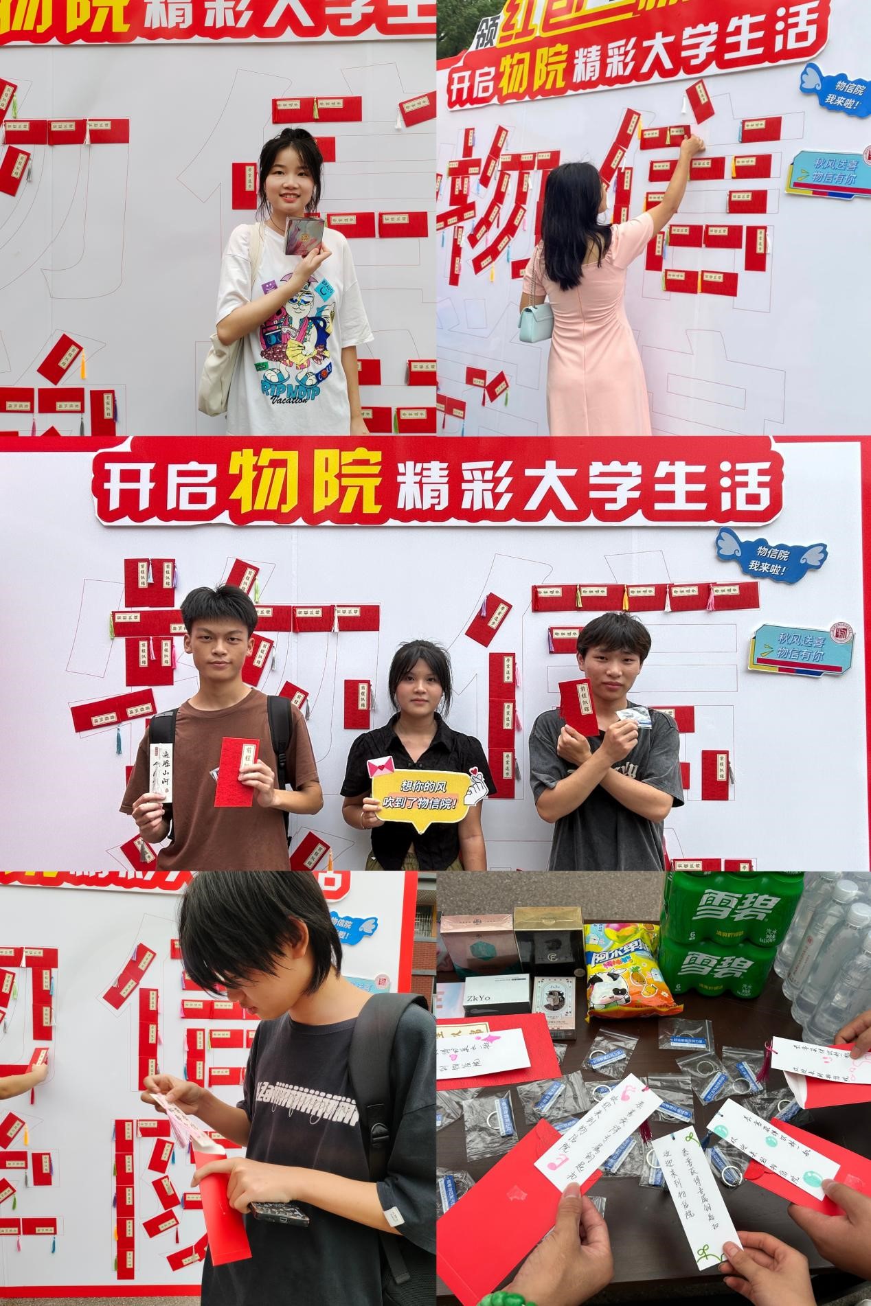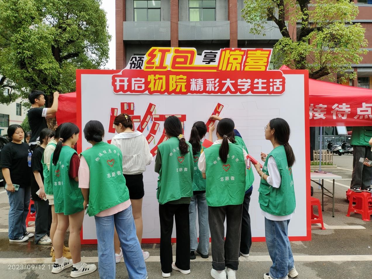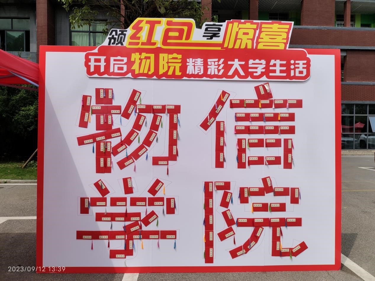 为了给每一位“萌新”留下美好的开学回忆,物流信息学院决定为物信学子准备了“红包墙”活动,红包里承载的是学长学姐们对大一新生即将展开的大学生活的美好寄语以及精美小礼品。红包墙由团总支书记雷瑶带领学生干部一起精心布置,将红包组成物信学院四个大字。对于刚进校园的新生来说,这类活动不仅充满了吸引力,更能够让他们感受到物信院的温暖,也能够让新生更快的融入物信院这个大家庭。